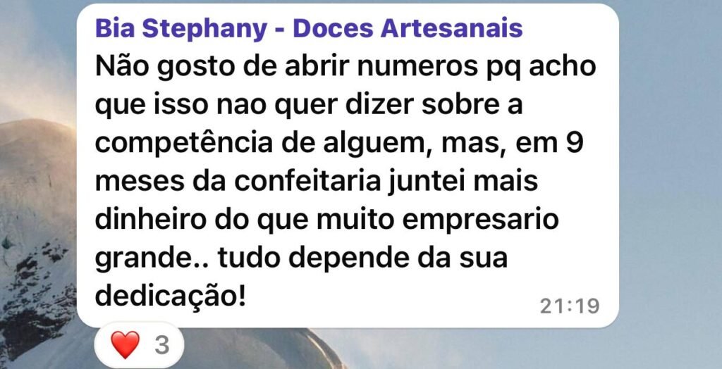 Em apenas 2 dias, essa aluna vendeu quase 50 copos da felicidade! Mas o melhor de tudo foram os feedbacks dos clientes encantados, garantindo que as vendas continuem. Afinal, não é só vender, é criar uma base fiel que mantém o faturamento!